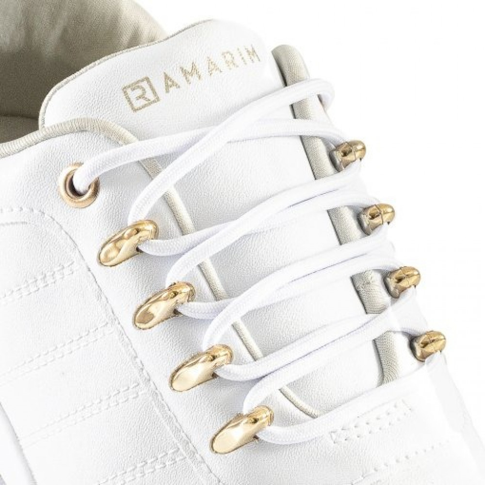 يتميز هذا الحذاء الرياضي المميز بتصميم عصري وجذاب يجمع بين الأناقة والراحة. يتميز الجزء العلوي من الحذاء باللون الأبيض الناصع، ويتميز بتفاصيل بيج جذابة تضفي عليه لمسة من الأناقة.